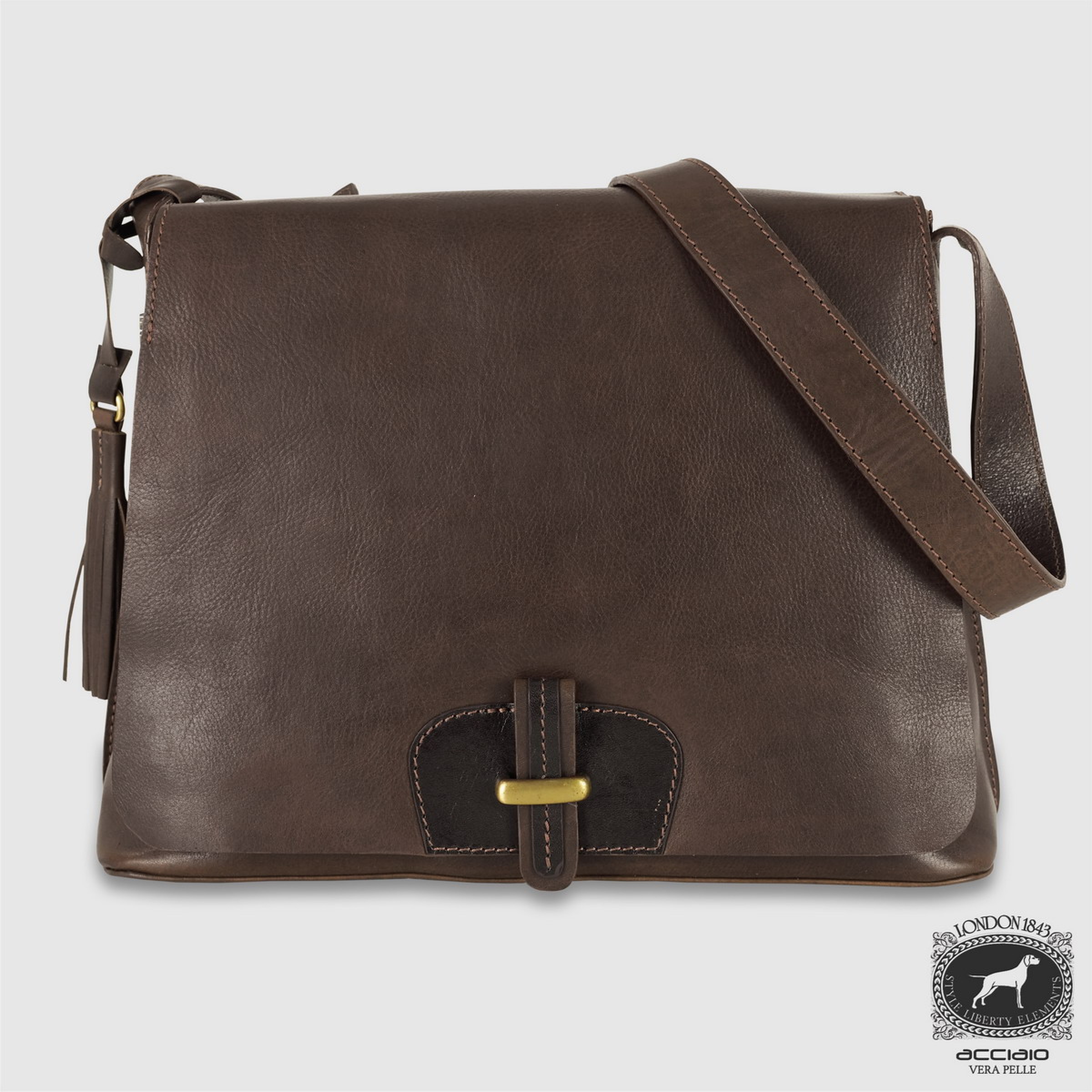 Lo stile originale di questa borsa è esaltato da particolari unici, come gli accessori in metallo e la patta con impunture a mano. Alta artigianalità e stile senza tempo, design Acciaio.