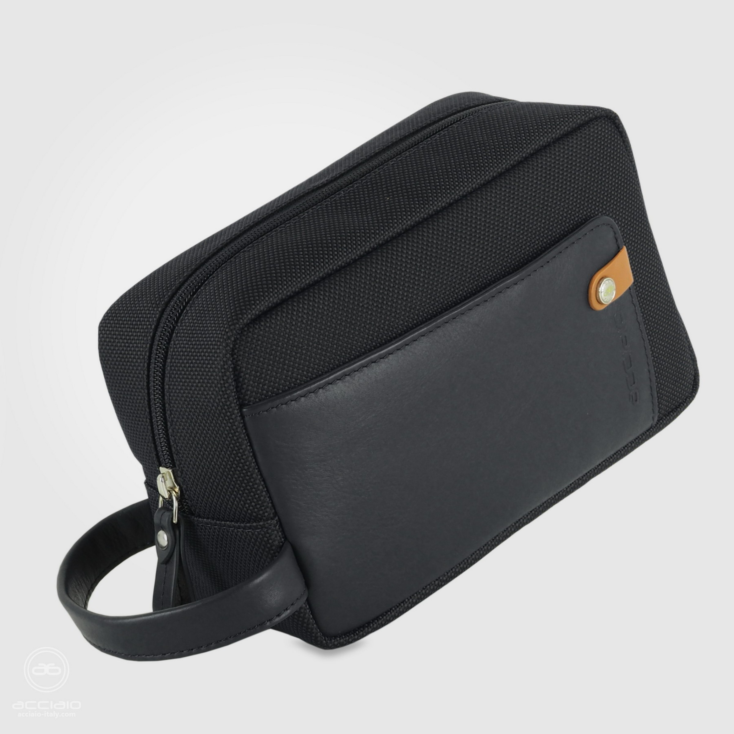 Borsello a mano Pochette da uomo "Steady" in tessuto e pelle Nero. Questa pochette da uomo è molto v..
