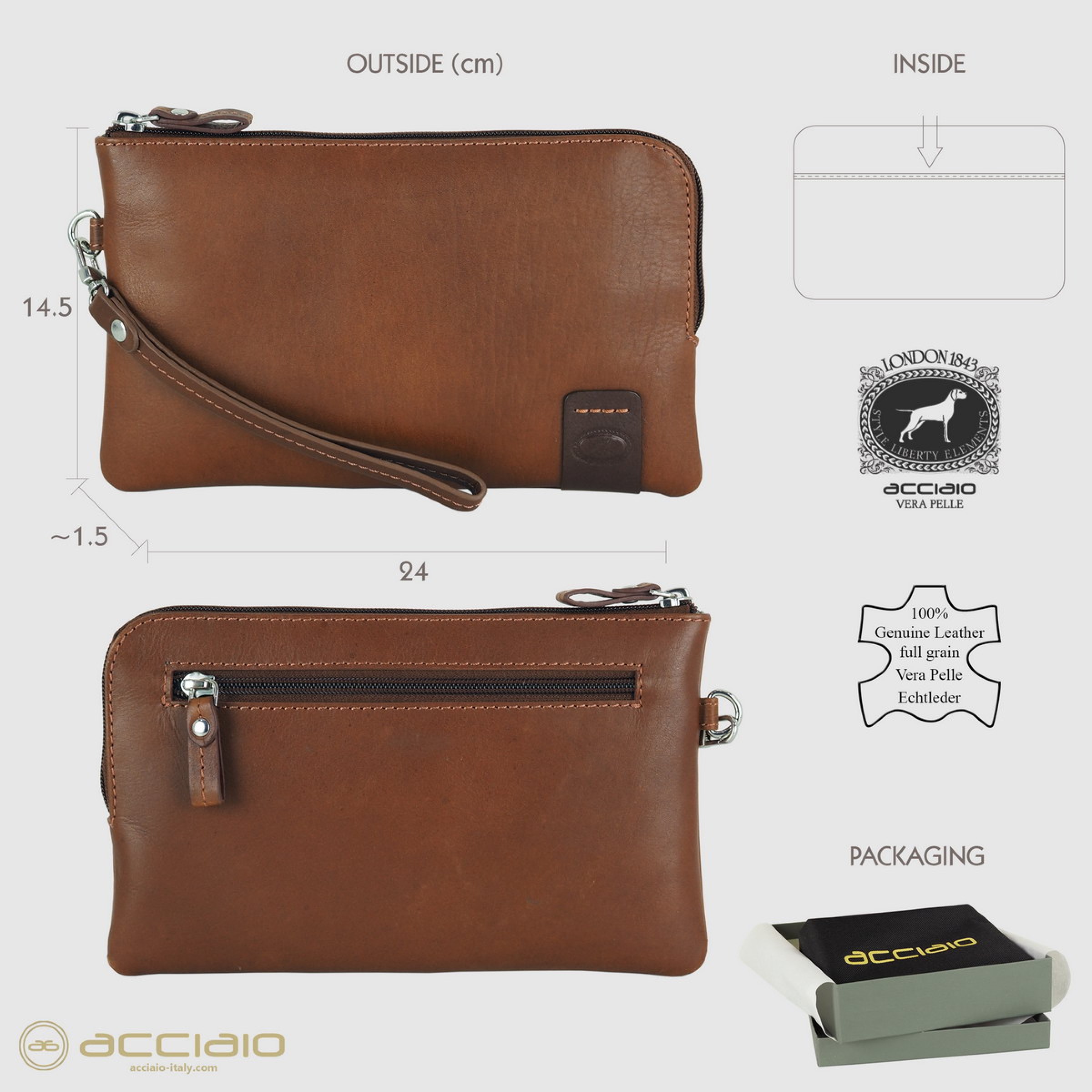 Pochette Uomo in pelle 2 vani zip Harry 7" Castagno