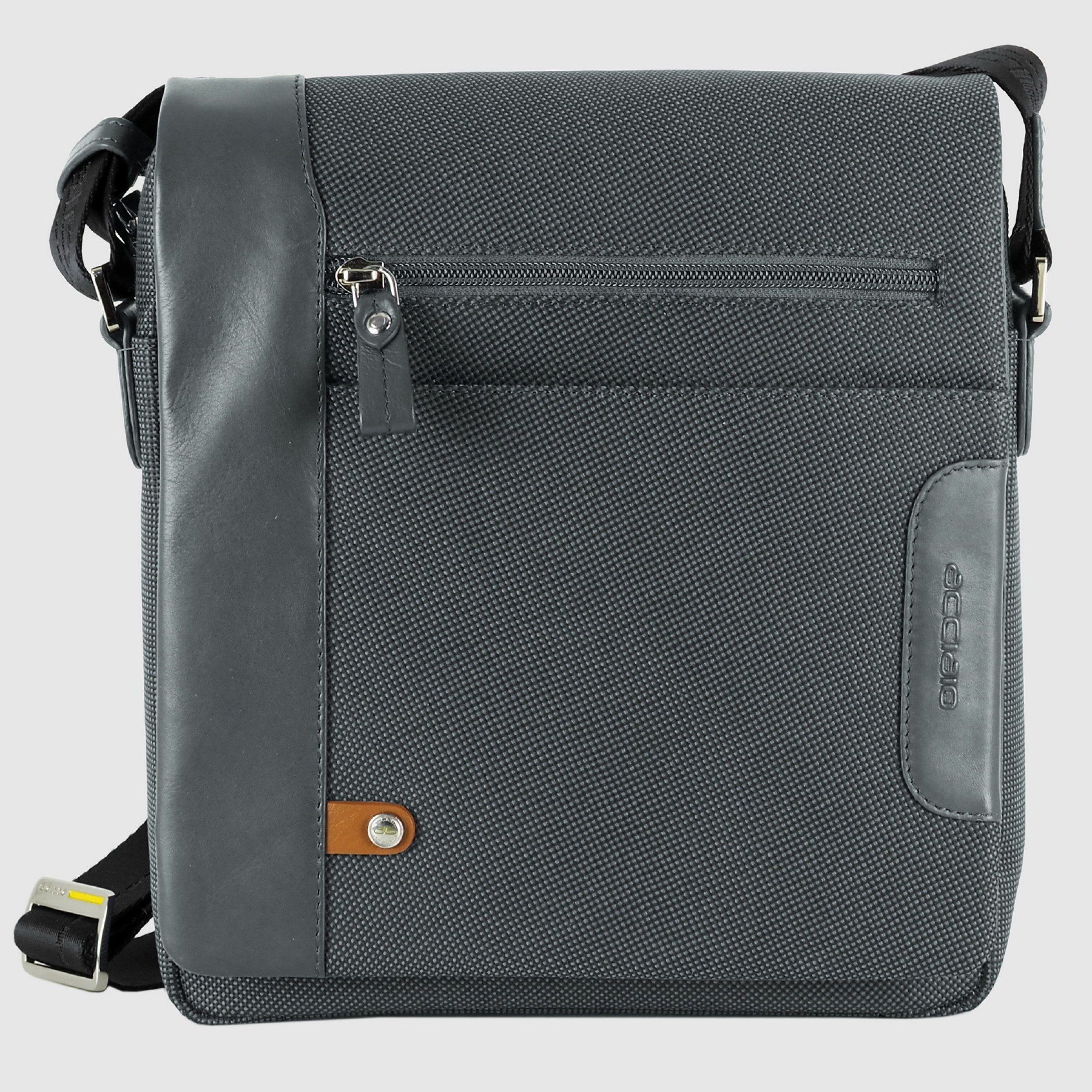 Men's small shoulder bag "Core" in fabric and leather Grey. It is a small but spacious men's bag tha..
