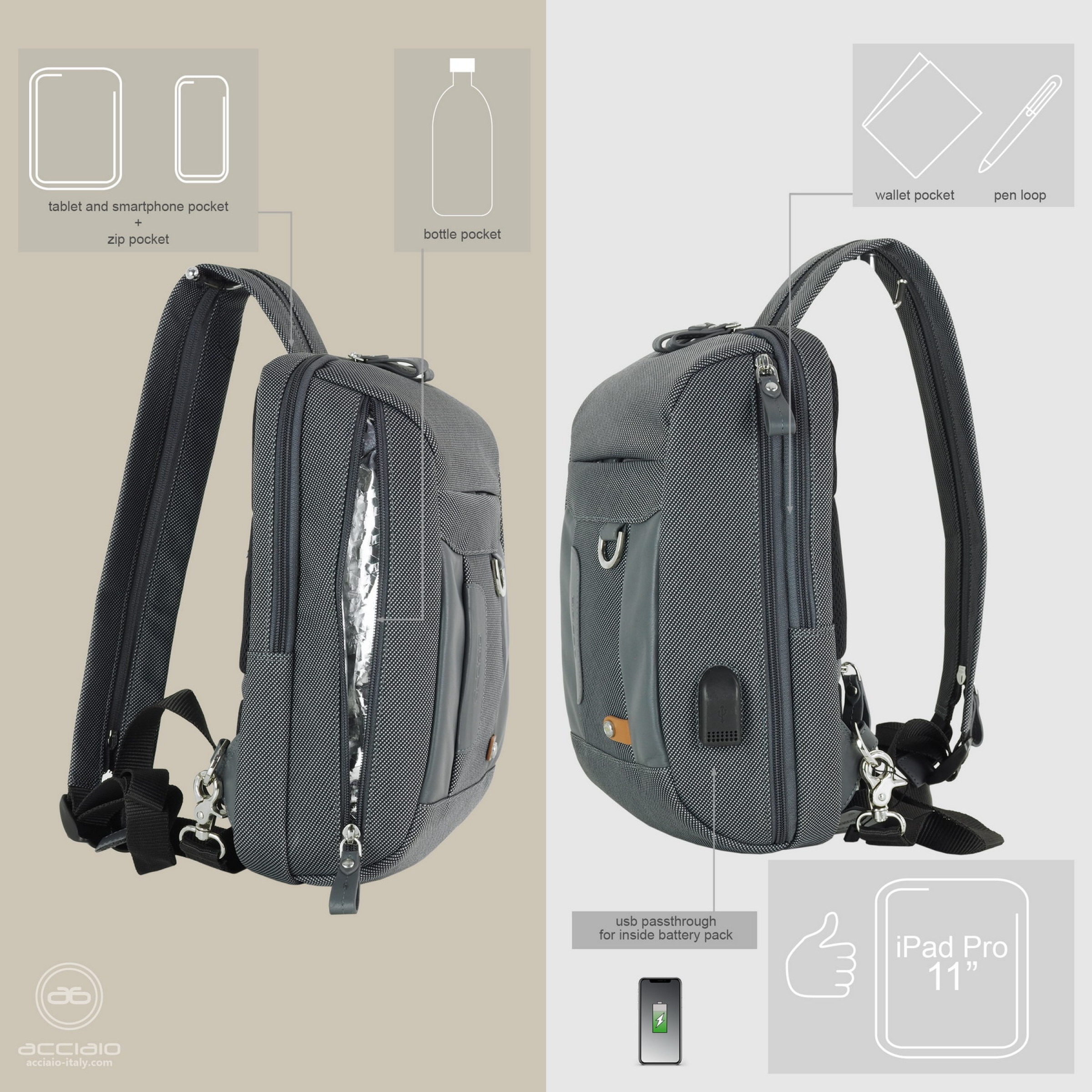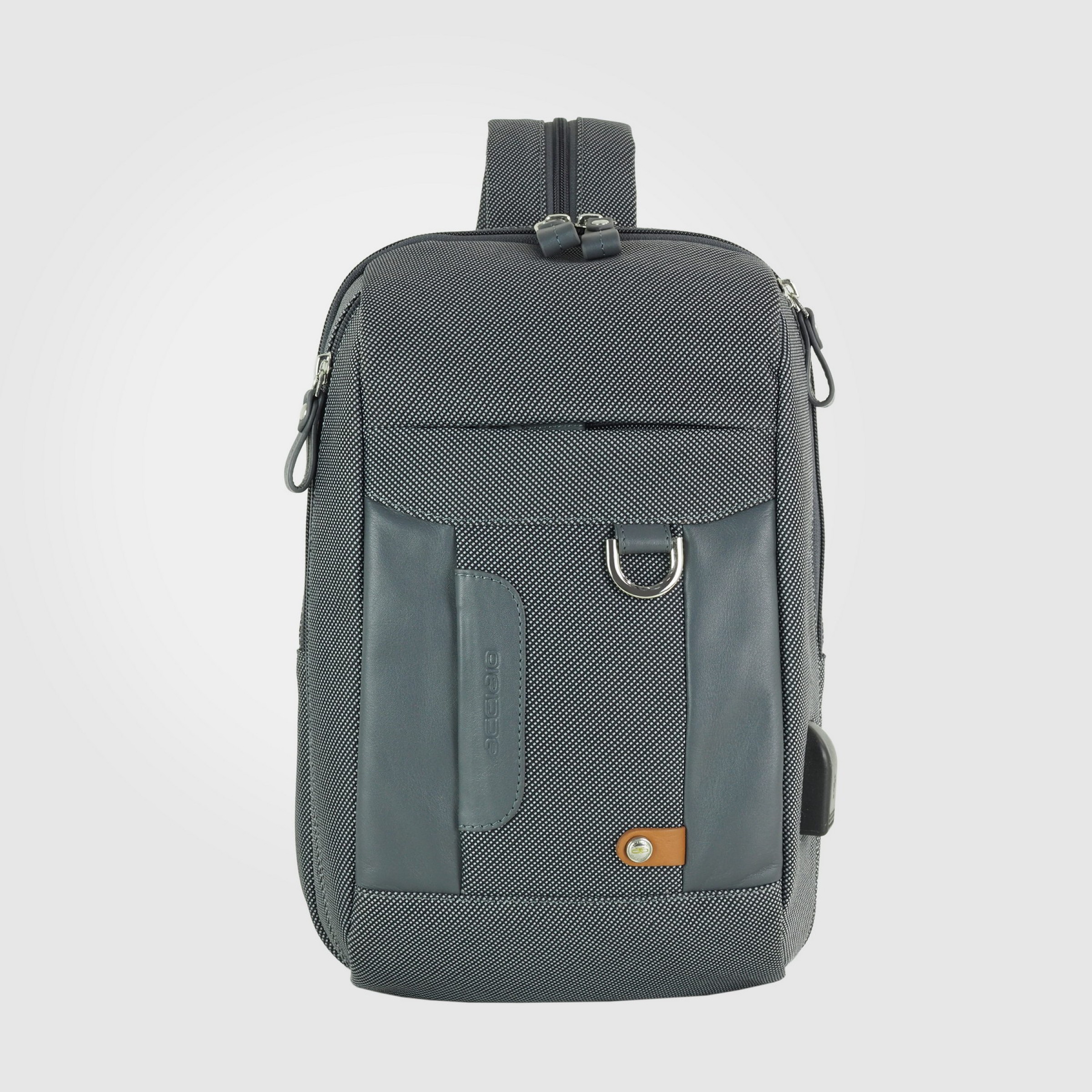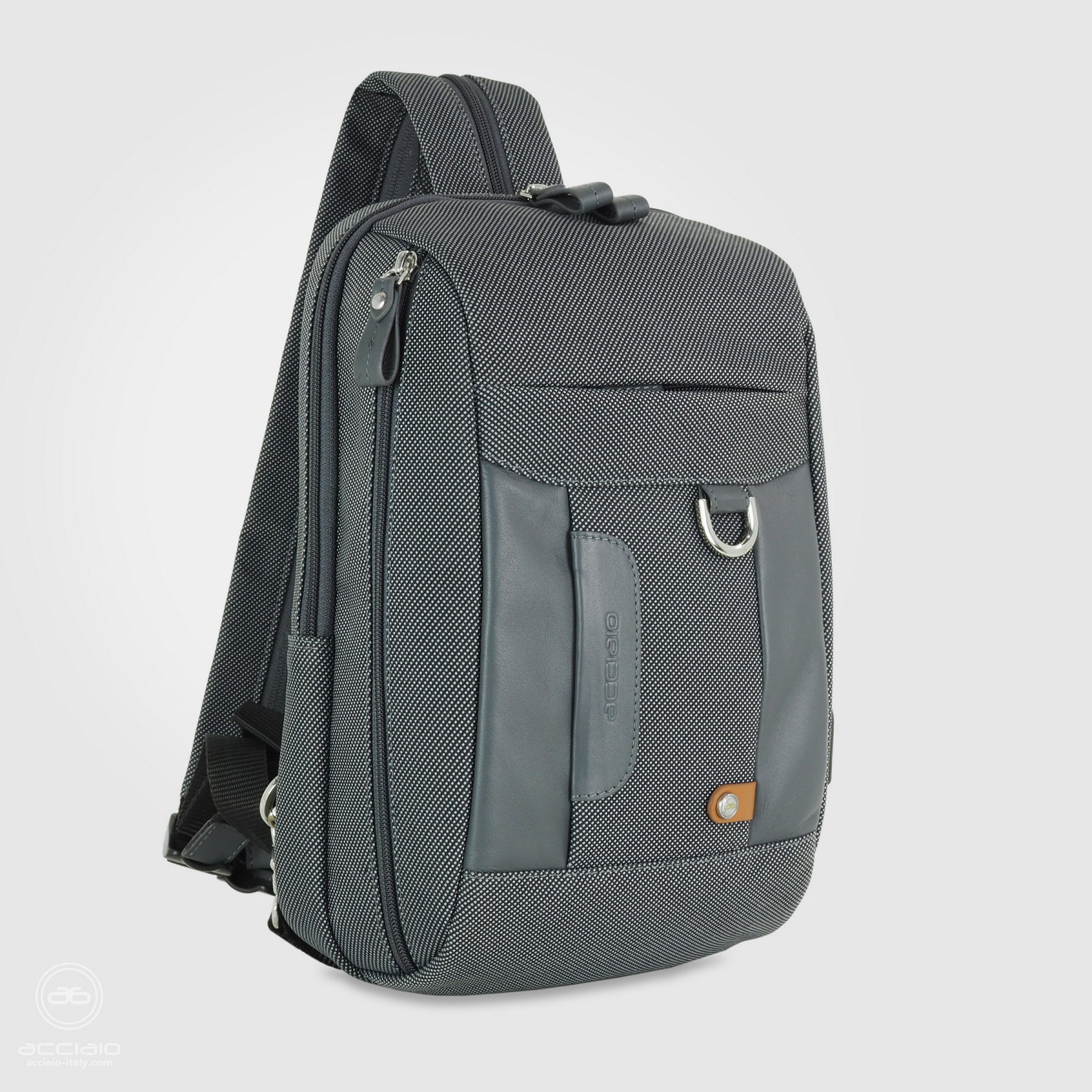 Monospalla uomo zaino piccolo Jet tessuto e pelle Grigio