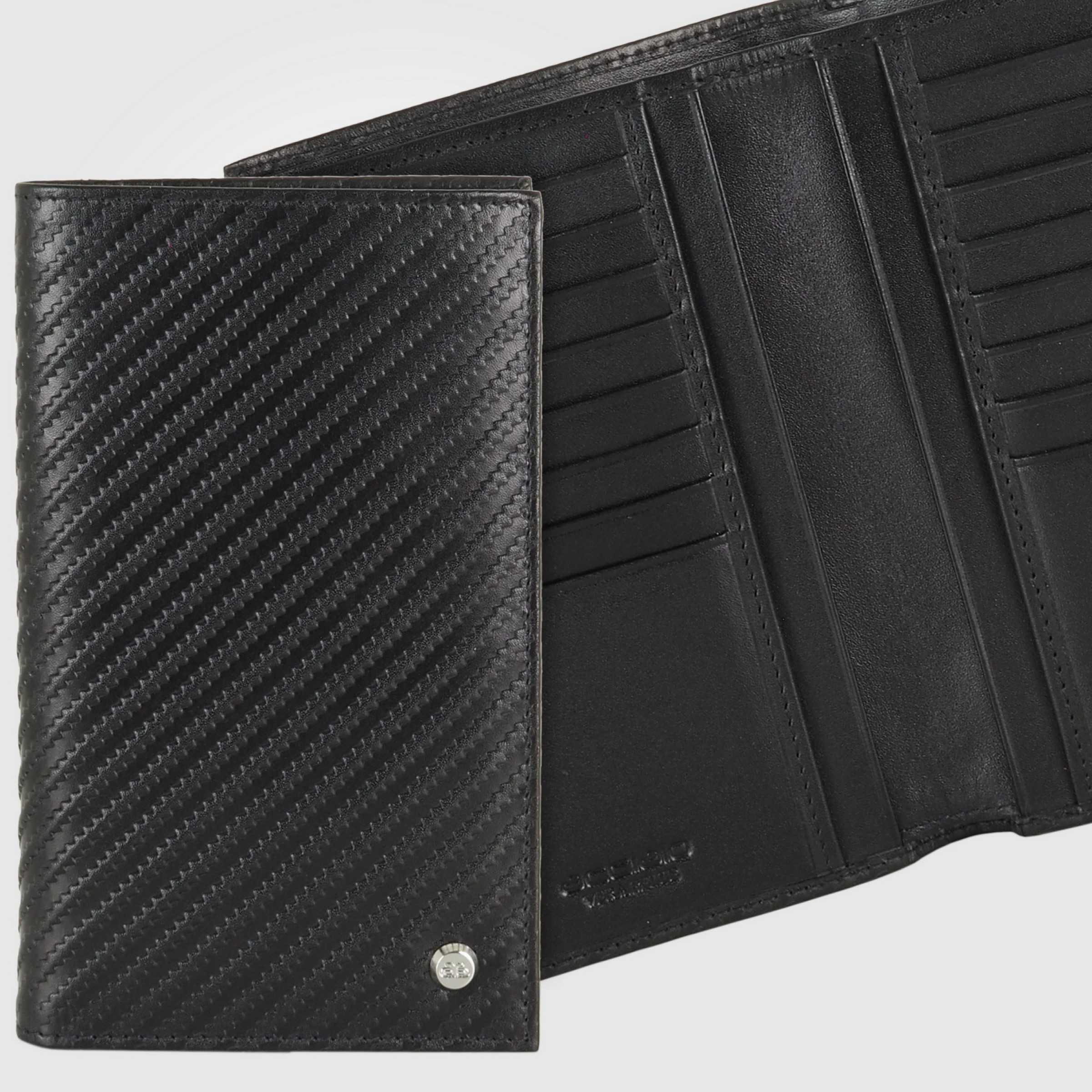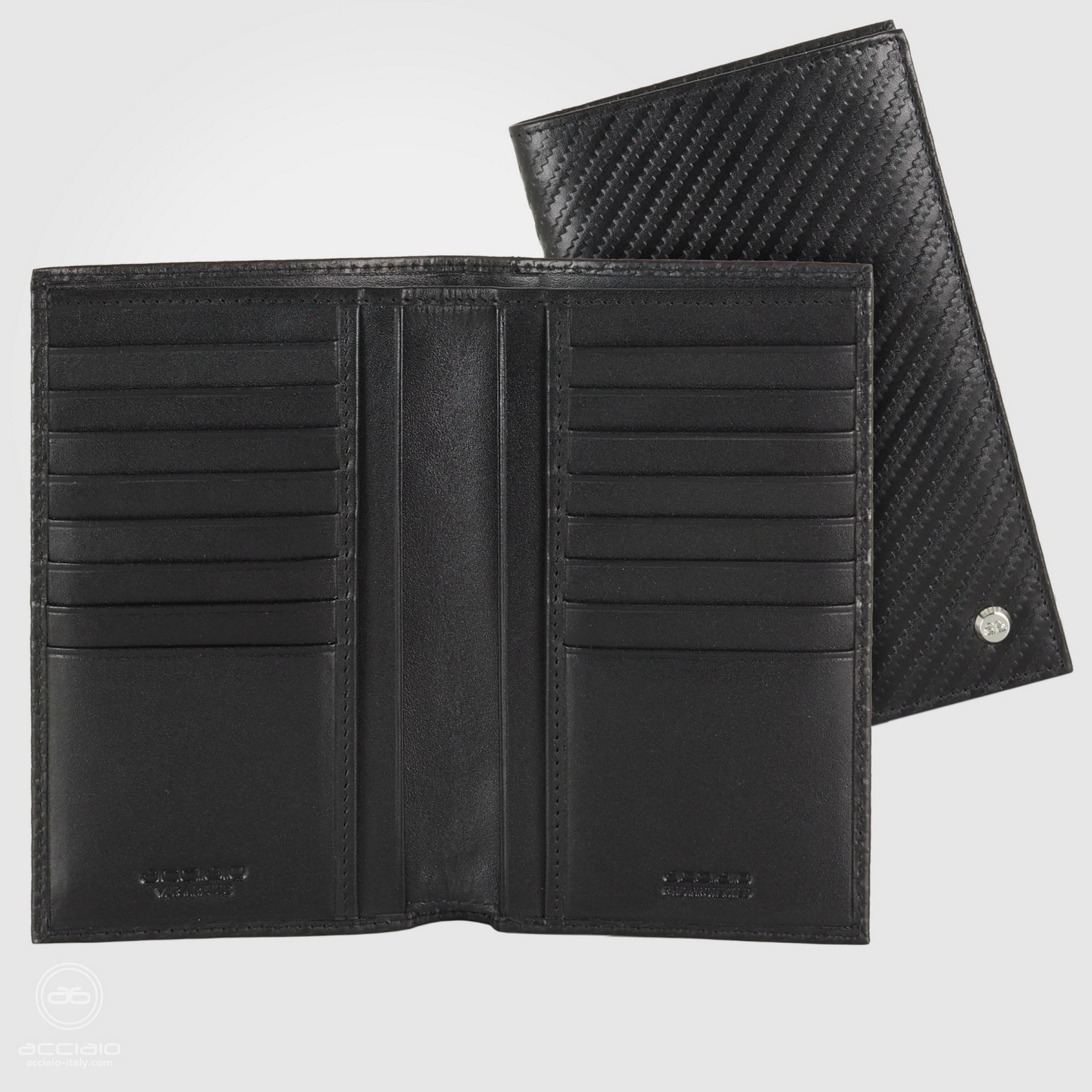 Questo portafoglio si distingue per la sua grande eleganza e qualità della pelle. La pelle di vitello utilizzata per realizzare questo portafoglio ha una stampa effetto tridimensionale e dona un aspetto lussuoso e di altissimo livello. Prodotto artigianale realizzato a mano utilizzando solo i migliori materiali per rendere unico e prezioso il vostro accessorio. Design Acciaio A.